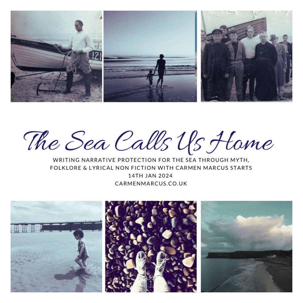 In this course we are going to explore the blurred relationship we have with the sea – the above and below of it – we’ll immerse ourselves in the language of the sea; we’ll meet the myths and mythical creatures of the sea and learn what they can teach us through their warnings and curses; we’ll traverse sea journeys – real and imagined; we’ll dive into the sea inside, and we’ll look at the work of non-fiction writers who are showing us a deeper more respectful relationship with the sea – restoring its power and mystery. I’ll share with you my writing and findings as a fisherman’s daughter and PHD student about narrative protection and the power of sea stories.