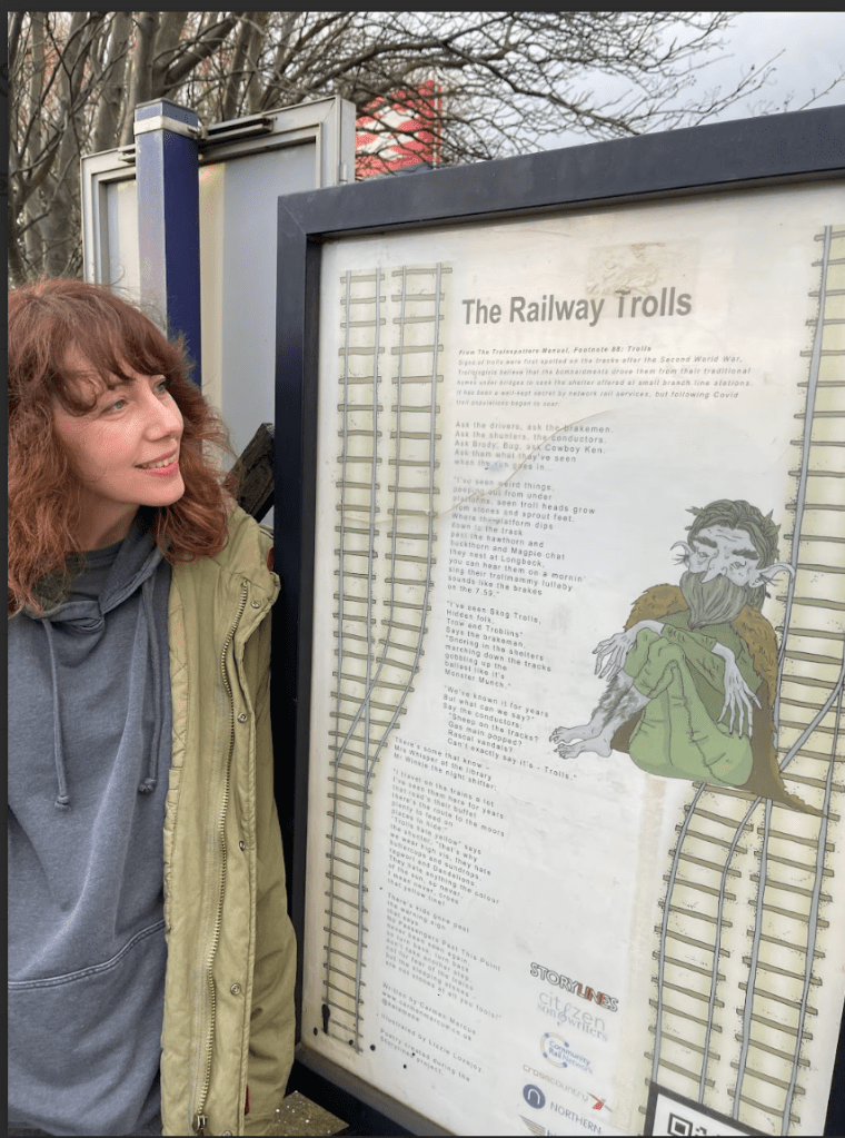 So proud of this poem commissioned by Storylines. You can see it at Marske by the Sea train station. I’ve always believed in Railway Trolls! Watch out for them beyond the tracks!