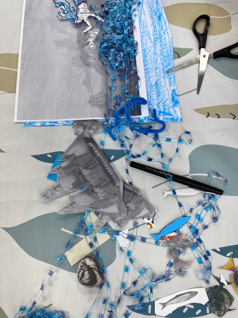 Kirkleatham Museum were inspired by my audio-visual podcast and photography exhibition The Catch, Redcar’s fishing story past and present in 2021 in collaboration with Tees Valley Arts and photographer Kev Howard. I’m a fisherman’s daughter, and sadly lost my dad when I was just 19 years old. I grew up with my father’s stories of the sea, wind-lashed rescues, protective sea gods, I owe my love of story to him. So when the museum asked me to develop a creative engagement programme with the public to help people to connect to their exhibition of all things by the sea – I had to! I was taken into the treasure house at the museum, that holds their own collection of all things sea related, and most especially the fishing gear! I knew this was going to have to be a family project, so I roped in my sister and cousin, to share their stories of fishing craft, methods, myths and superstitions. We created the interpretation material, advised on the recreation of a traditional bait house and put our hears and souls to the work. I also devised a programme of workshops for schools, families and a fisherman’s talk charting the changes in fishing craft and method and the current vulnerabilities. Recordings of the talks and oral history recordings will be available soon.